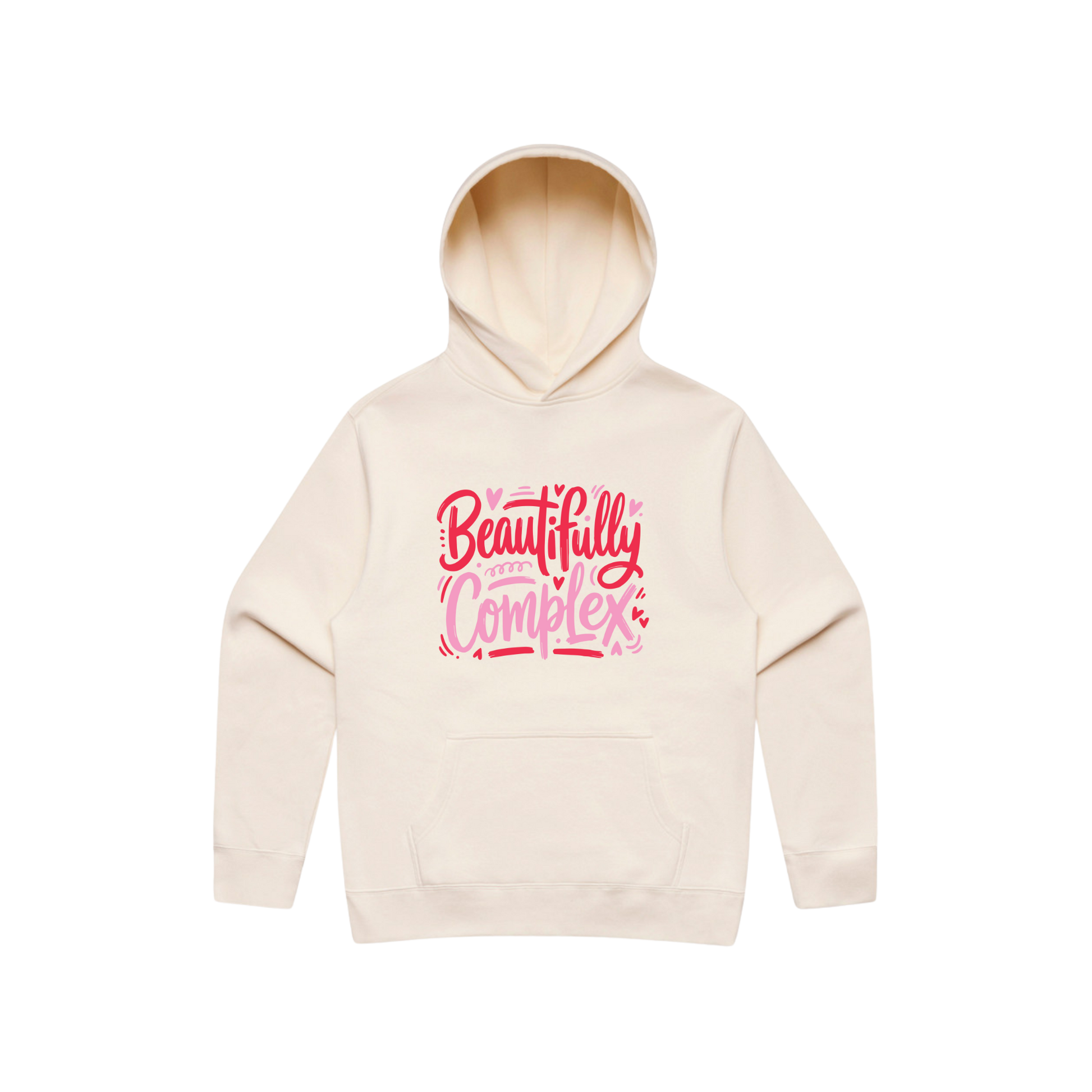 Features include a pullover style, drop shoulder, kangaroo pocket, and ribbed sleeve cuffs, complemented by a self-fabric lined hood.